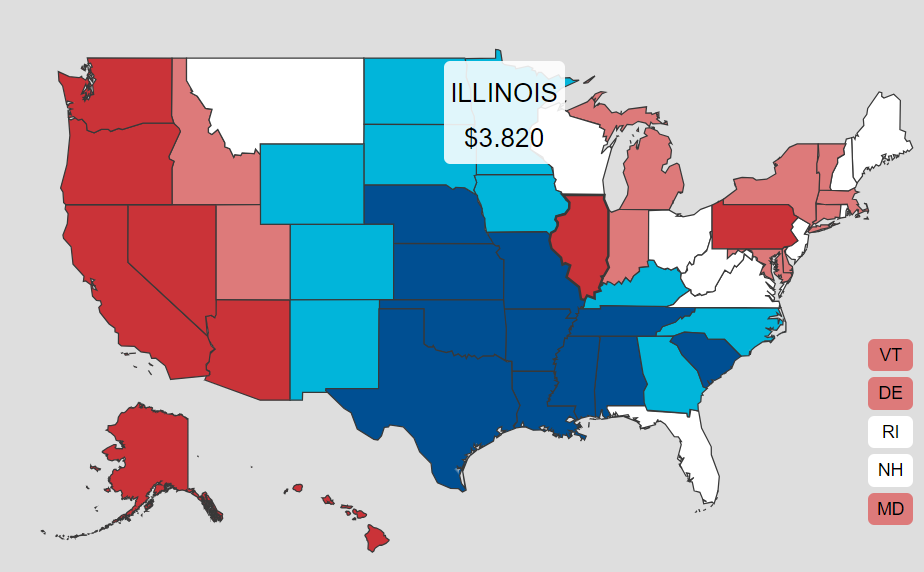 It’s no wonder Illinoisans are so ticked off about fuel prices here in Illinois vs. the lower prices in other states. In case you didn’t know it, Illinois has the highest gas prices of any state east of the Rockies.