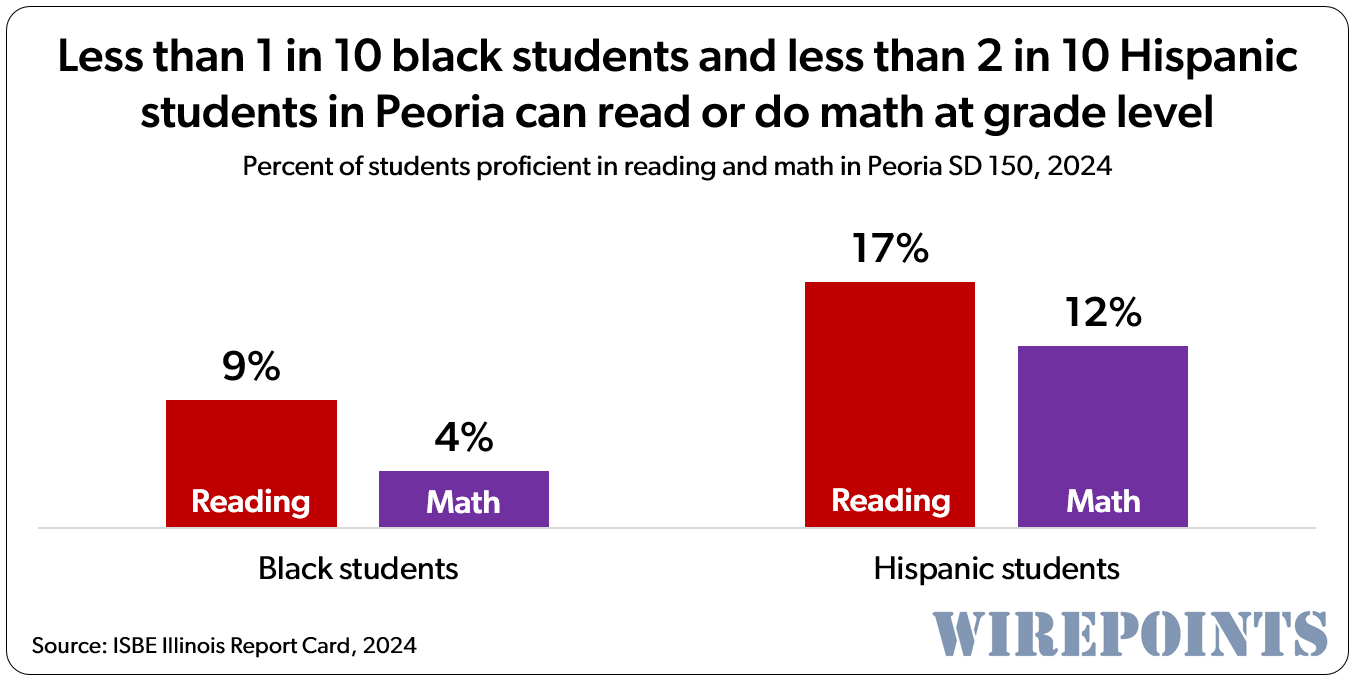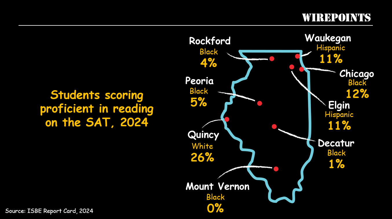 The data Wirepoints presents in this report represents an absolute dereliction of duty by those who run Illinois’ public schools. Just 7% of Rockford’s black, 16% of Decatur’s white, and 11% of Elgin’s Hispanic 3rd-graders can read at grade level.