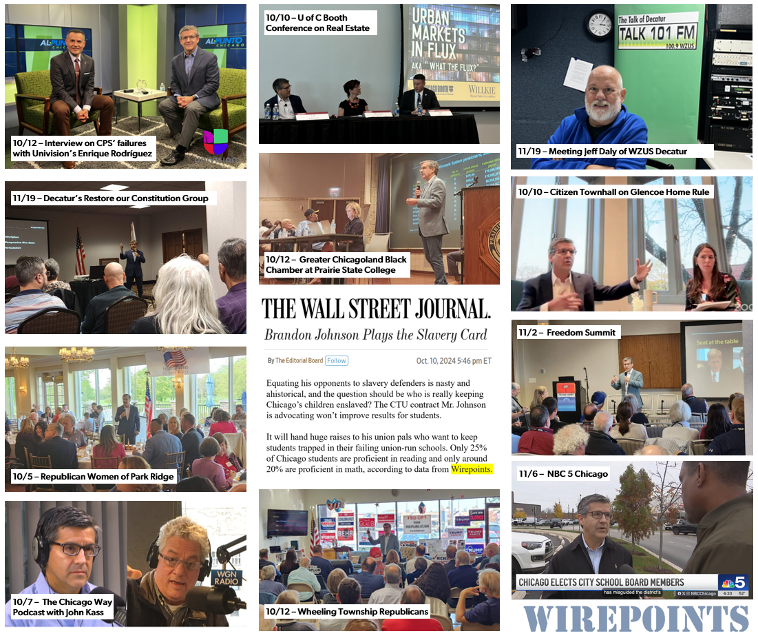 The Wall Street Journal’s James Freedman highlighted Wirepoints’ Report Card data in his piece criticizing Mayor Johnson’s union-friendly/anti-taxpayer requirements for the post of deputy mayor.