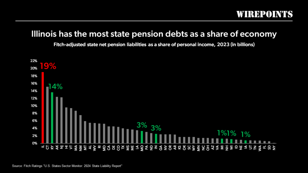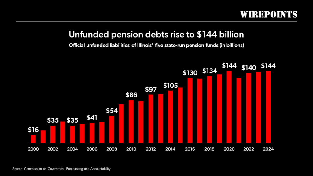 People will leave the state but it won’t be like a Syria or Ukrainian exodus. What will happen over a generation is that the state will become poorer and poorer as more tax dollars are siphoned off to pay for pensions, infrastructure will crumble, property values will tank, and so on. All of Illinois will look like Rockford and we’re already halfway there. We won’t attract higher paying new residents, and the Big 10 to Chicago pipeline will dry up. New jobs won’t materialize and hiring will nearly completely stop. We are turning into a state like Michigan where there’s… Read more »